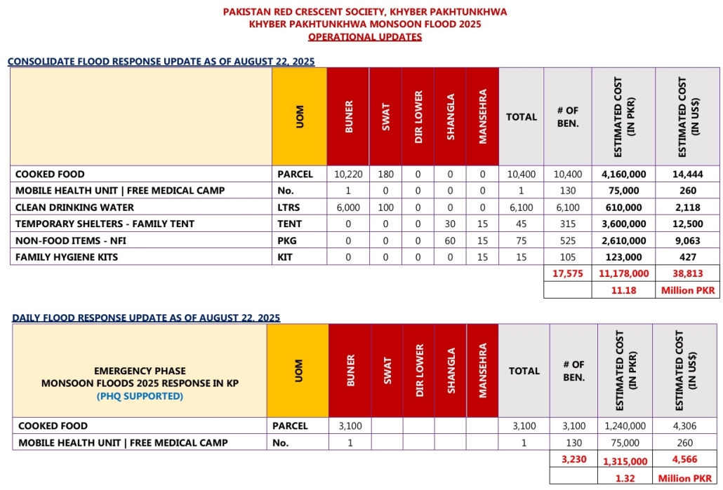 PRCS Khyber Pakhtunkhwa Continues Flood Relief Operations – Daily Update (22 August 2025)