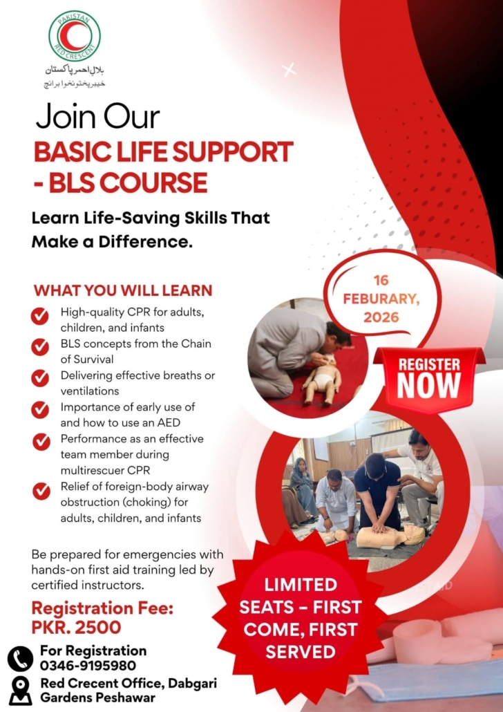 Basic Life Support training plays a vital role in saving lives during critical moments before professional medical help arrives. By organizing such initiatives, PRCS Khyber Pakhtunkhwa continues to fulfill its humanitarian mandate of enhancing resilience, promoting health awareness, and building safer communities.