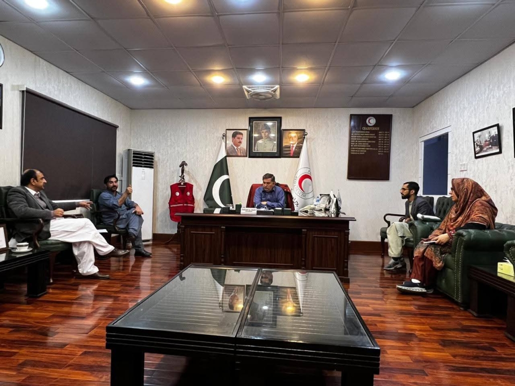 Peshawar – An important meeting was held at the Provincial Headquarters of the Pakistan Red Crescent Society (PRCS) Khyber Pakhtunkhwa under the chairmanship of Farzand Ali Wazir, Chairman Red Crescent KP. The meeting focused on strengthening organizational performance, enhancing discipline, and reinforcing the humanitarian mission of the society.