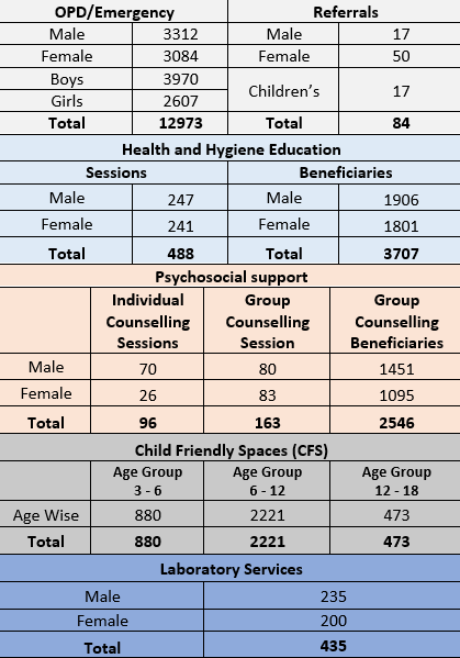 PRCS being auxiliary to the Government in Disaster Preparedness and Disaster Response extended its services by providing Health Care Services at TDP’s camp Bakka Khel Bannu. PRCS is currently providing following services: